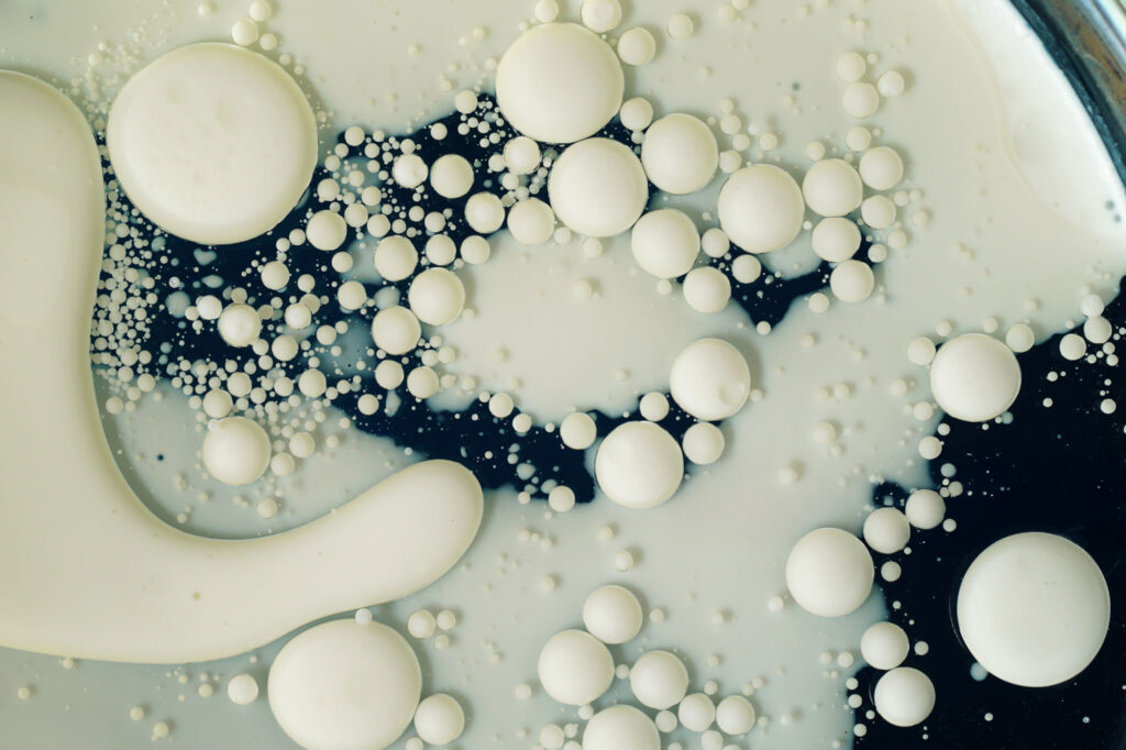 Zwei oder mehr nicht mischbare Flüssigkeiten, wie Öl und Wasser, werden in einer stabilen Emulsion vereint. Durch die starke Kavitationswirkung entstehen Tröpfchen mit kleinerem Durchmesser, was zu einer besseren Stabilität und gleichmäßigen Verteilung der Phasen führt. Dieses Verfahren wird häufig in der Lebensmittelindustrie, Kosmetik und Pharmazie verwendet, um Emulsionen wie Lotionen, Cremes oder Getränke herzustellen.